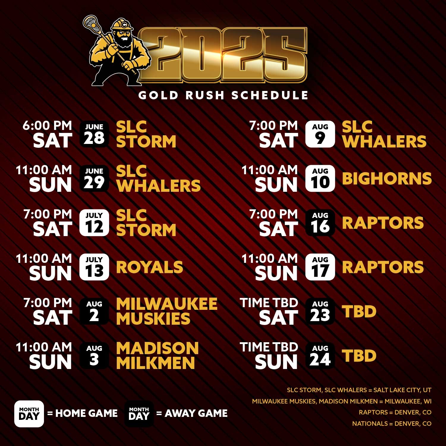 For the 2025 season we will be traveling to Denver, Salt Lake City Utah and Milwaukee.